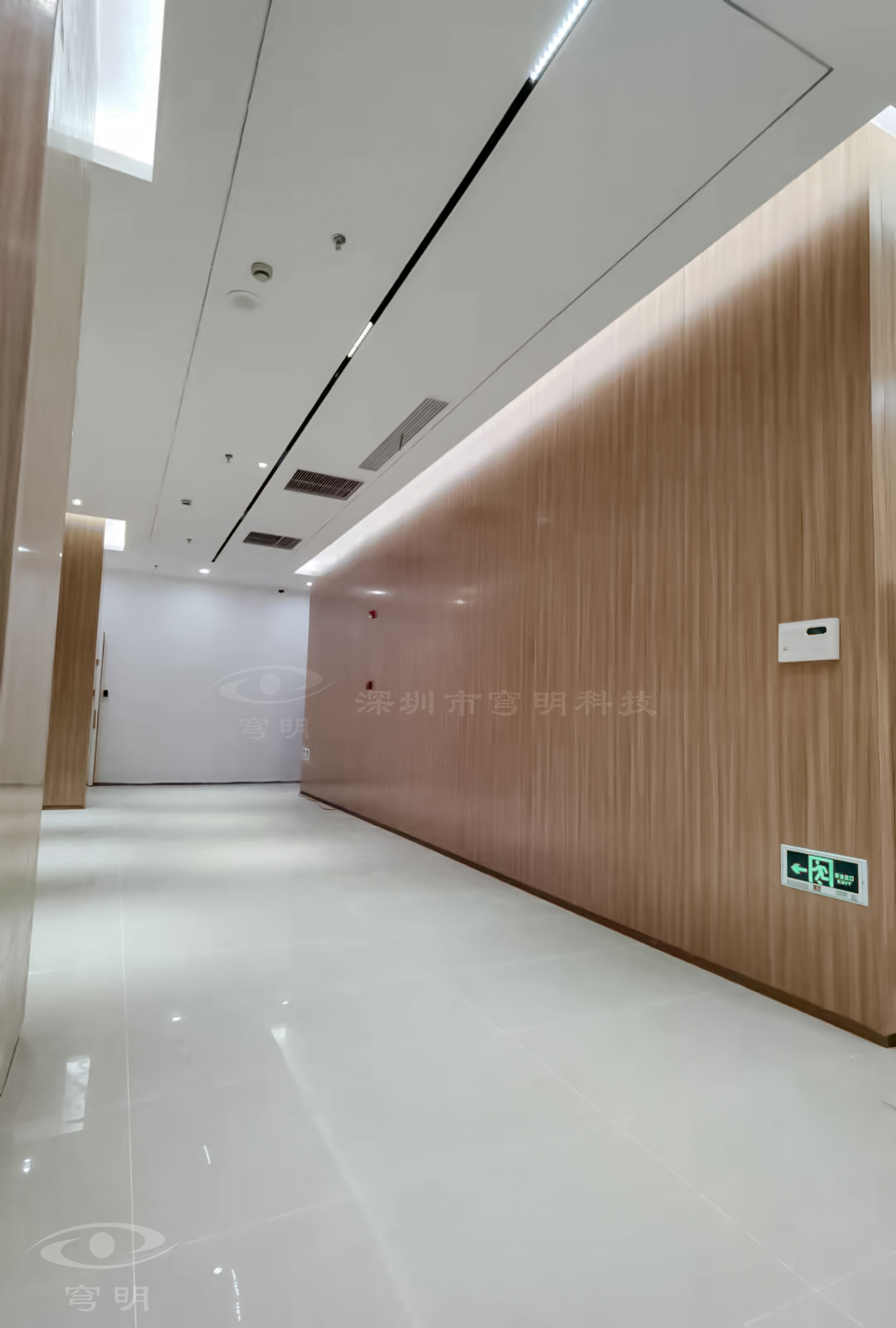 行政走廊以鏡面、陶瓷地板與sy849白色、紅豆杉木紋金屬復(fù)合板的碰撞融合,玻璃構(gòu)成空間的多維度,使觀者置身其中,產(chǎn)生時(shí)尚簡約的共鳴。