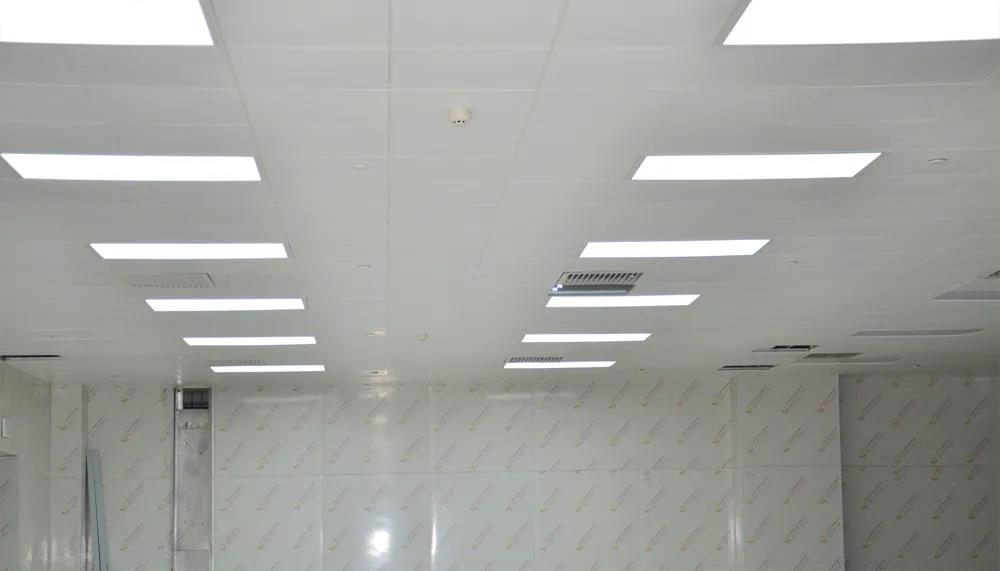鋪放式天花便于天面頂部空間設(shè)備檢修、維護(hù),燈具的維護(hù)和更換更加便利。帶吸音紙的微孔即可以防塵,又可以在全部硬質(zhì)表面的機(jī)房環(huán)境中起到一定的吸音作用。